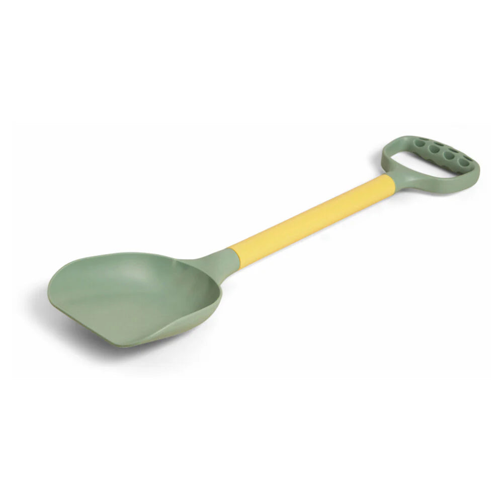 Es un día precioso en la playa. ¿Quién construirá el castillo de arena más grande? ¿Quién cavará el hoyo más grande? ¿Quién encontrará las conchas más bonitas? ¡Nuestra pala gigante, hecha de plástico reciclado, convierte el día en la playa en un día de diversión sostenible!