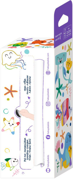 El kit Haku Yoka Mini Coloring Roll Sea Life es un rollo de papel portátil de 2 metros con temática oceánica y reverso adhesivo para colorear fácilmente y sin ensuciar sobre superficies planas. Diseñado para niños a partir de 3 años, este kit incluye cuatro crayones de cera de abeja al 10%, de fácil agarre y 20 pegatinas. El rollo de papel está preperforado cada 20 cm para facilitar su desgarro.