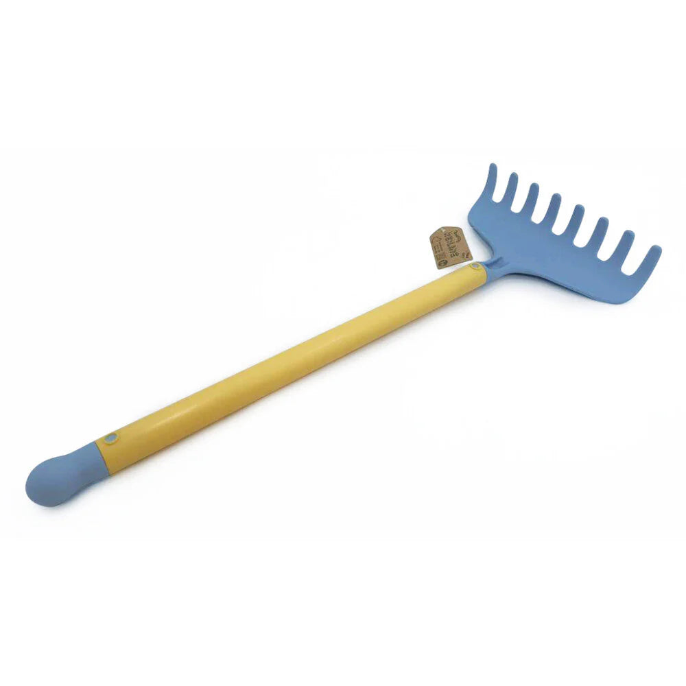 Es un día precioso en la playa. ¿Quién rastrillará el mejor camino? ¿Quién cavará el hoyo más grande? ¿Quién encontrará las conchas más bonitas? ¡Nuestro gran rastrillo, hecho de plástico reciclado, convierte el día en la playa en un día de diversión sostenible!