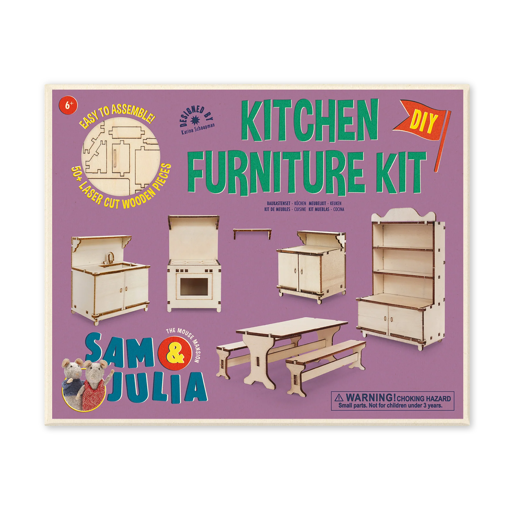 ¡Crea una mini cocina con este kit de muebles! Las piezas de madera precortadas se ensamblan fácilmente con instrucciones sencillas y tienen una escala de 1:12. Basado en la serie de libros "La Mansión del Ratón" de Karina Schaapman, este kit te permite dar vida al encantador mundo de Sam y Julia. Este kit de muebles incluye un moisés, una cuna, un cambiador, una mecedora, un armario, un baúl de juguetes, algunos juguetes pequeños y estantes. La pintura, el pegamento y los accesorios se venden por separado.
