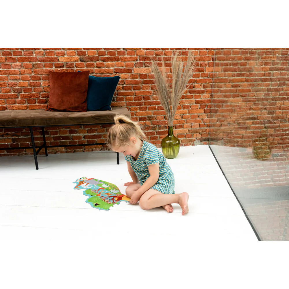 Crea una imagen colorida de los numerosos animales de la sabana ensamblando 60 piezas.